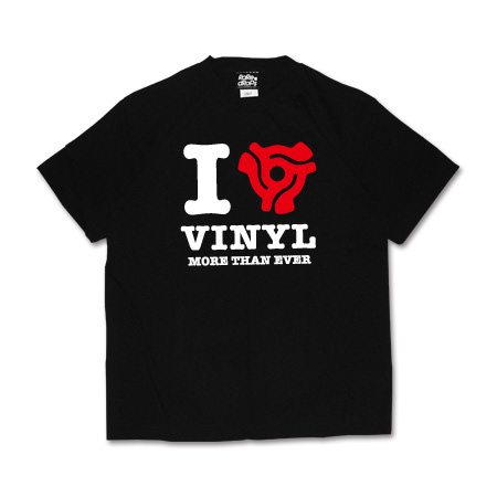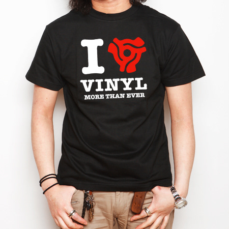 ミュージックTシャツブランド「RARE DROPS」の「I LOVE VINYL」Tシャツ。このTシャツのアートディレクション、デザインを担当しました。
